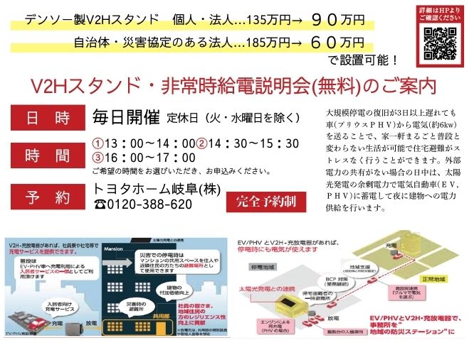 トヨタホーム岐阜で非常時給電体験をしてみませんか?