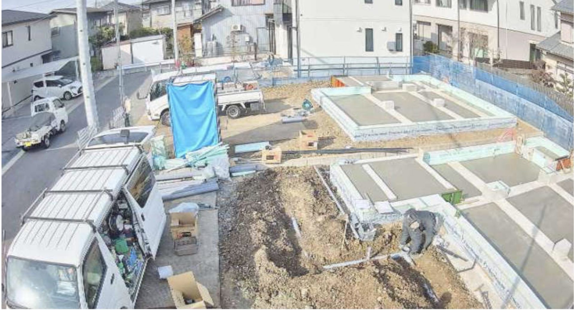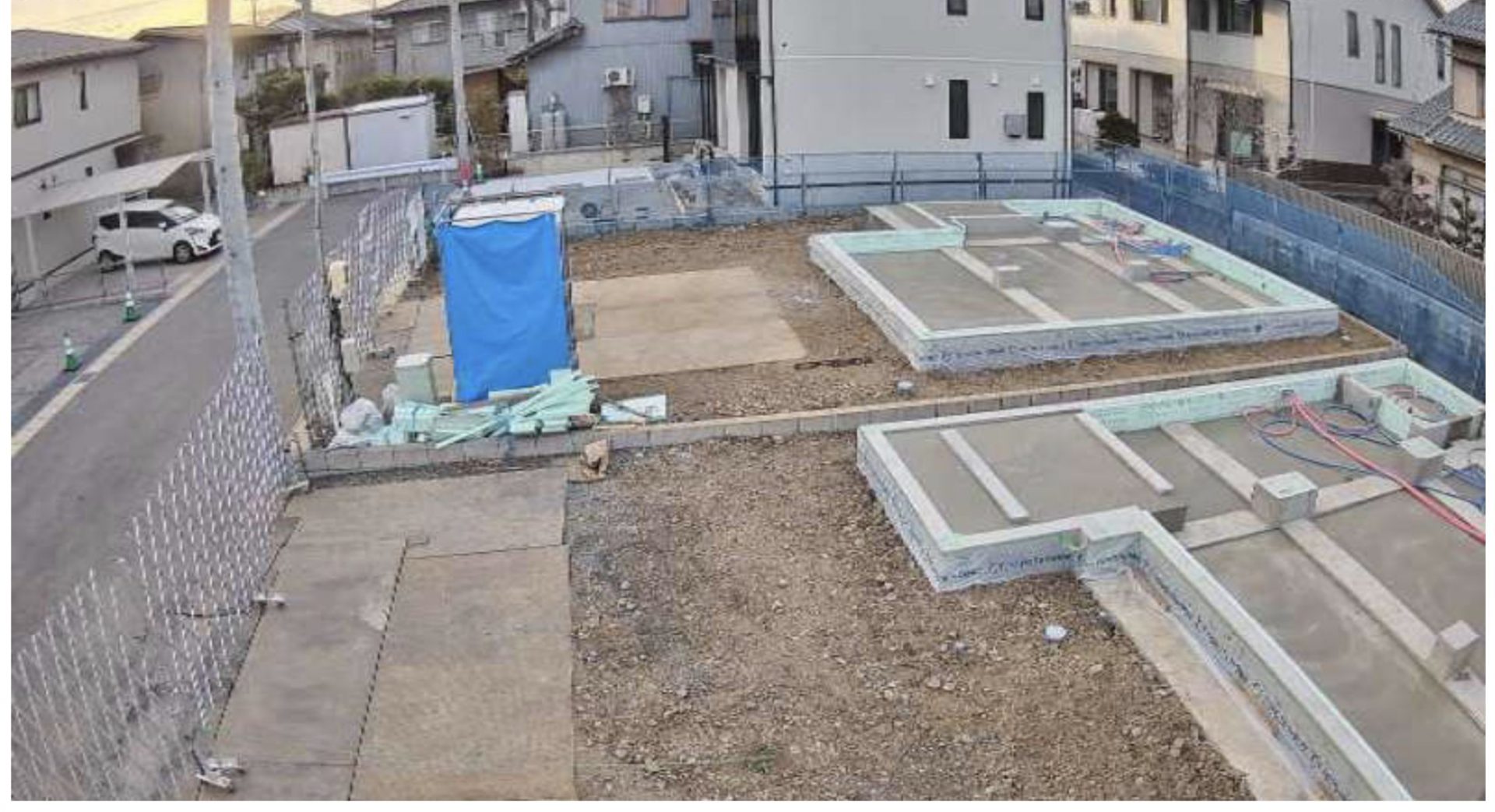 ▼1/24 コンクリート打設養生 (2号地)/型枠建て込み(3号地)